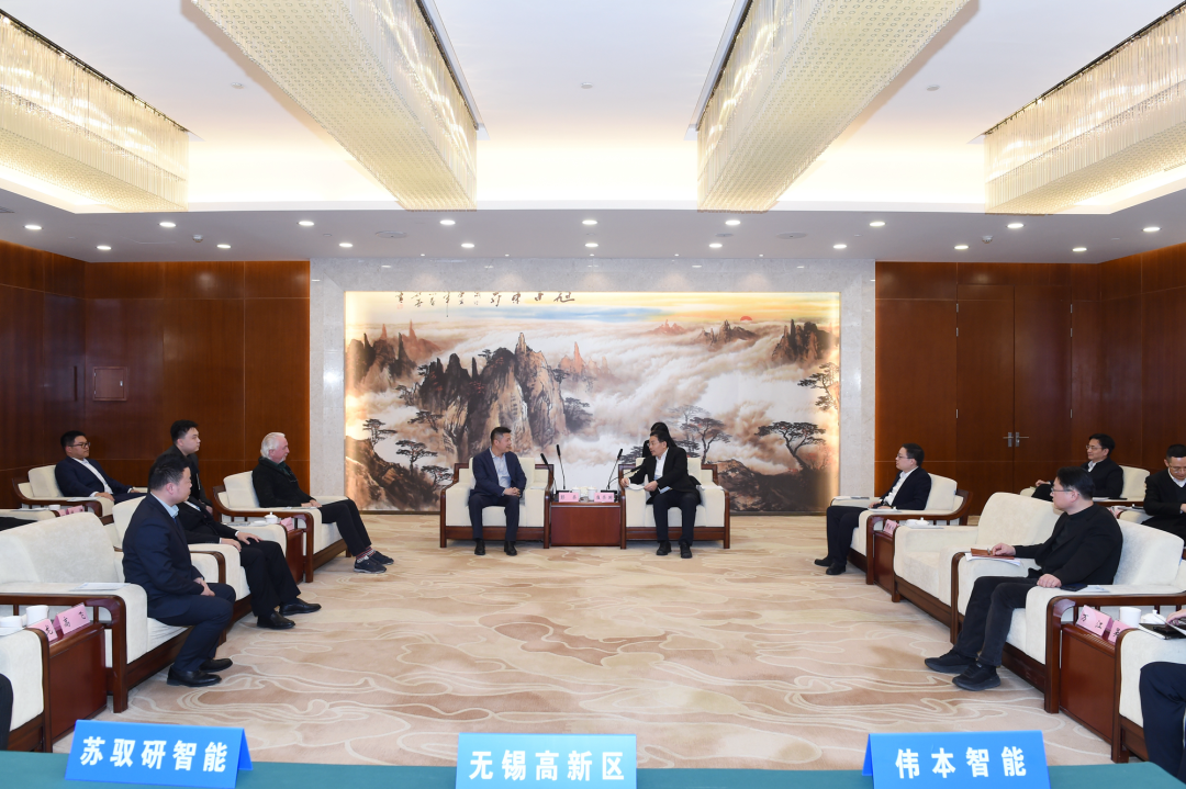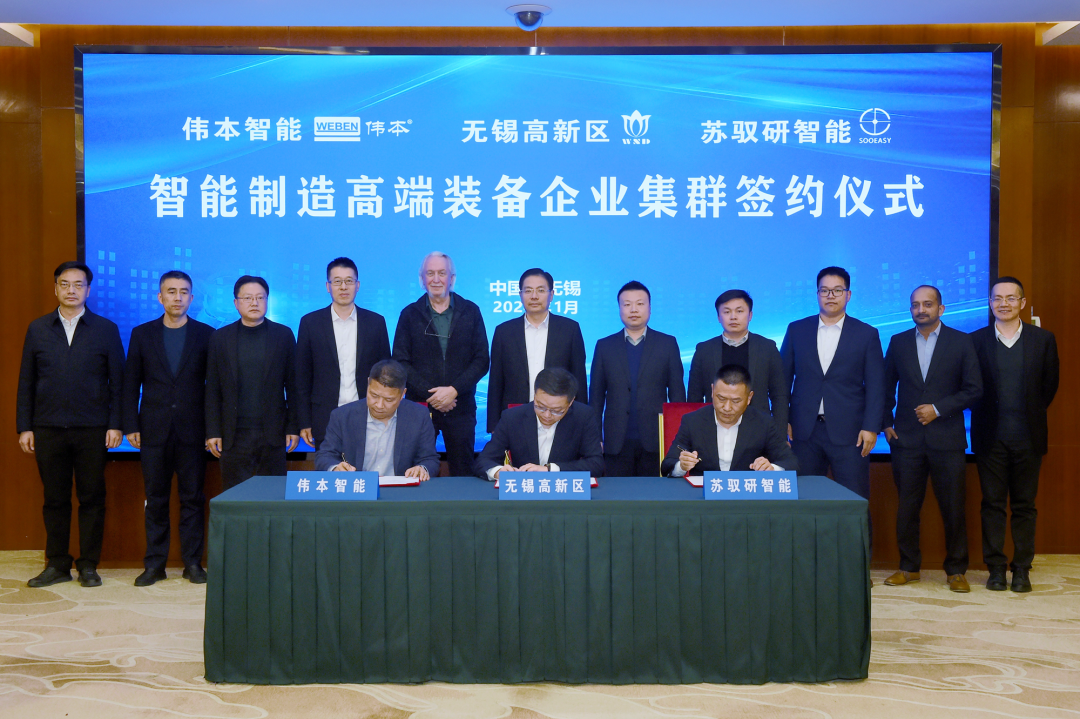 1月5日,偉本智能董事長(zhǎng)彭榮、瑞典艾克斯康董事長(zhǎng)卡爾、蘇馭研智能總經(jīng)理洪文標(biāo)一行來(lái)訪無(wú)錫高新區(qū)。無(wú)錫高新區(qū)黨工委書(shū)記、新吳區(qū)委書(shū)記崔榮國(guó)與彭榮、卡爾、洪文標(biāo)一行交流會(huì)談,并出席智能制造高端裝備企業(yè)集群簽約儀式。區(qū)領(lǐng)導(dǎo)顧國(guó)棟參加活動(dòng)。